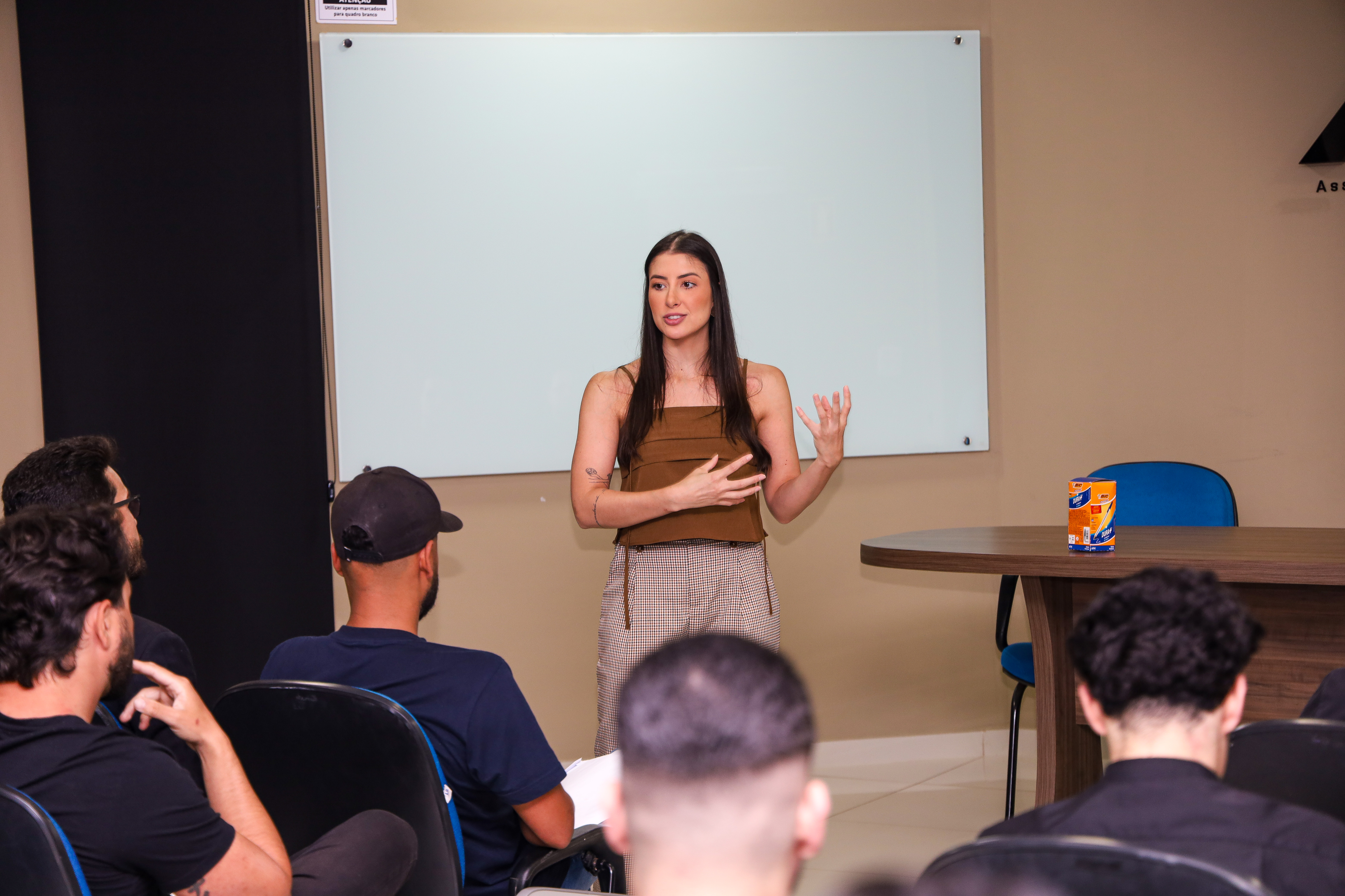 A consultora Ana Flávia Miquelante, coordenadora de todos os núcleos setoriais da Aciu, fez uma apresentação e destacou a importância dos profissionais das barbearias estarem reunidos em busca de melhorias e fortalecimento para o setor.