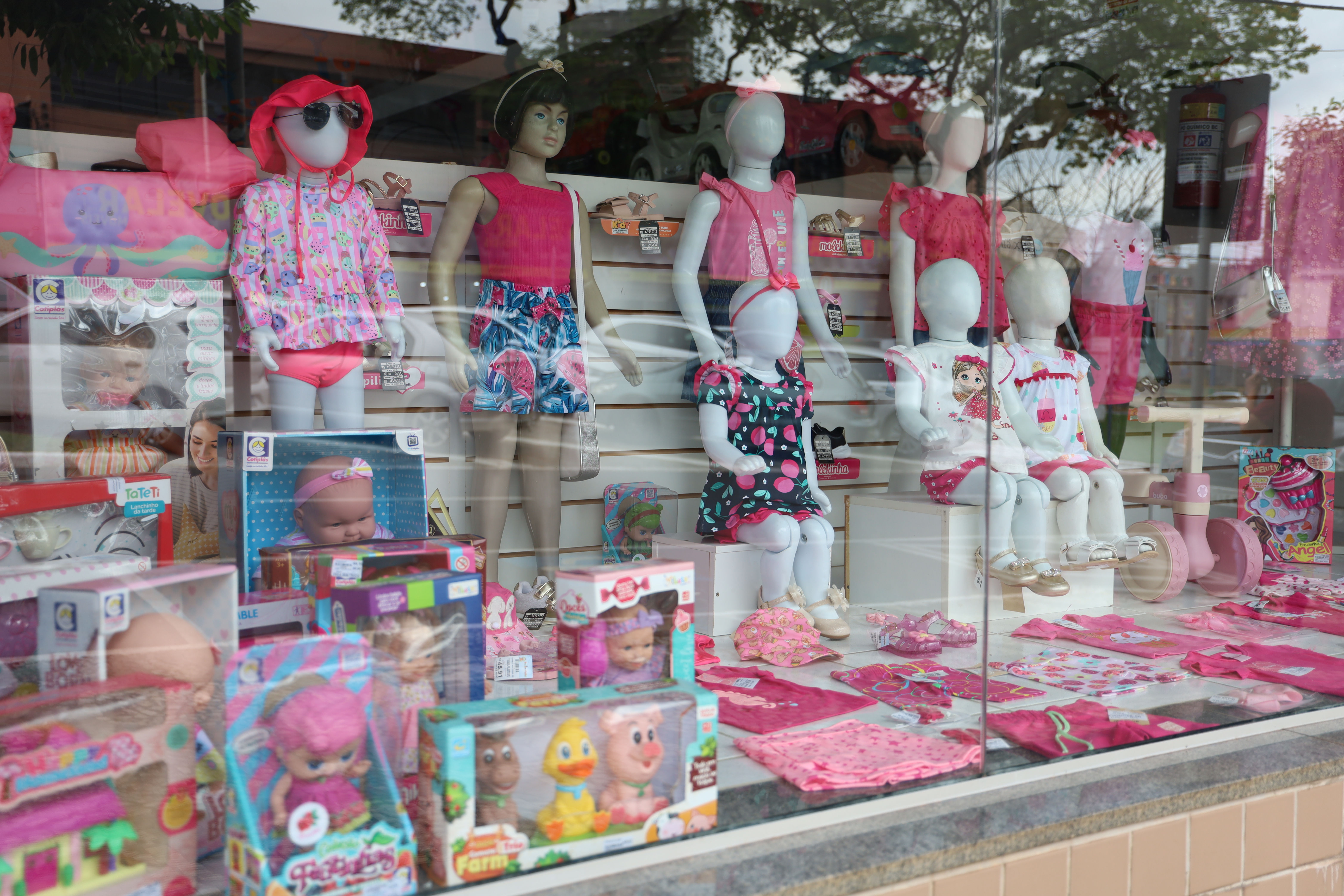 A empresária Neuza Pedro Malvezzi caprichou na decoração das vitrines para atrair os consumidores e afirma que não faltam opções de presentes para as crianças “A loja está bastante movimentada e nossa expectativa é muito boa com as vendas de roupas, calçados, fantasias e brinquedos”.