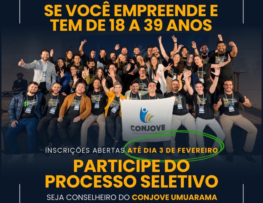 O Conjove (Conselho do Jovem Empresário) da Aciu segue com inscrições abertas para o processo seletivo 2026, até esta terça-feira (3). Podem participar do conselho empreendedores de 18 a 39 anos.