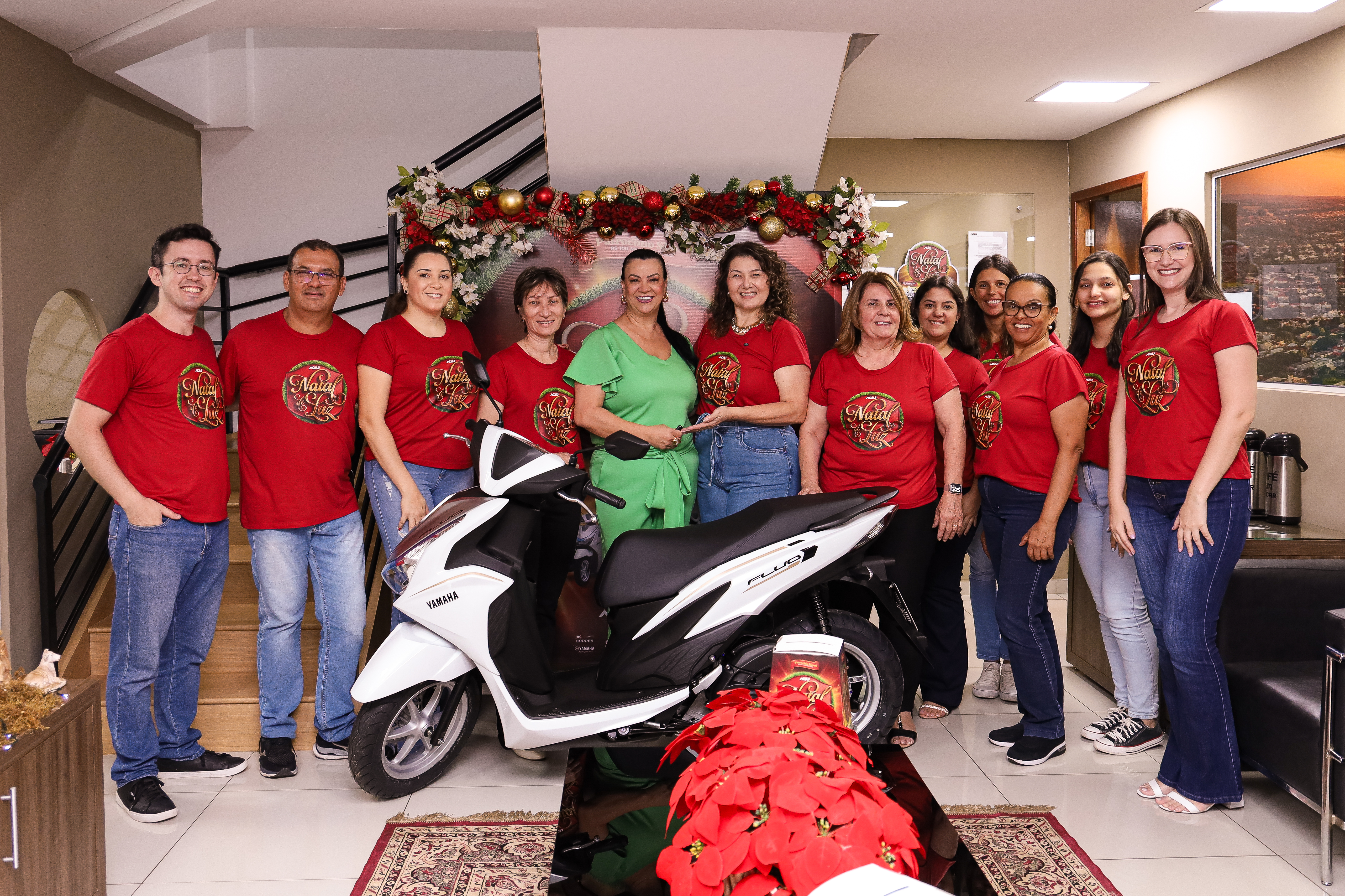 O primeiro sorteio da Campanha Natal de Luz Aciu foi realizado no auditório da entidade, na manhã desta sexta-feira (5). Eliane de Souza Rocha Zorzenoni, moradora de Umuarama, teve o cupom premiado e ganhou uma moto Yamanha Fluo.