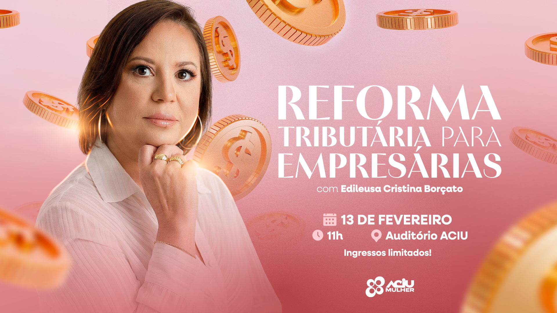 A Aciu Mulher está organizando um encontro para debater sobre a reforma tributária com empresárias, no dia 13 de fevereiro, às 11h, no auditório da Aciu.