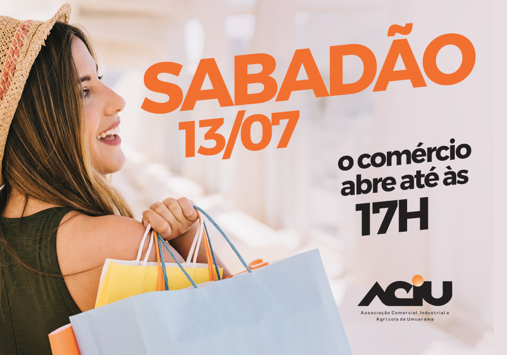 Sábado (13) é dia de consumidores de Umuarama e de toda região aproveitarem as promoções especiais preparadas pelos lojistas associados à Aciu (Associação Comercial, Industrial e Agrícola de Umuarama). É o Sabadão, já tradicional na cidade, quando o comércio abre em horário especial no segundo sábado do mês, das 9h às 17h, muito mais tempo para que todos possam fazer suas compras com tranquilidade.