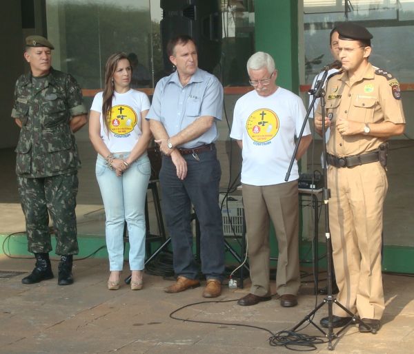 Uma solenidade, realizada na manhã desta terça-feira (18) na Praça Santos Dumont, região central de Umuarama, deu início à programação da Semana Nacional de Trânsito 2012 na cidade. A abertura oficial do evento foi feita pela chefe da Ciretran (Circunscrição Regional de Trânsito), Claudia Canalli, e contou com a participação do major Enio Soares dos Santos, comandante da 5ª Companhia Independente da Polícia Militar, e do presidente da Aciu (Associação Comercial, Industrial e Agrícola de Umuarama), José Celso Zolim.